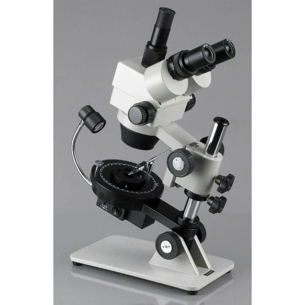 - An advanced 7X-45X trinocular jewelry/gem microscope with rotatable darkfield stage and cordless LED illumination