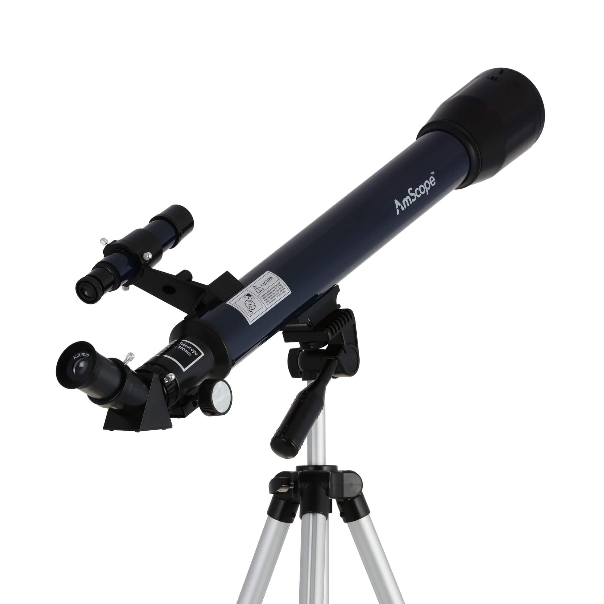 This is a perfect lightweight refractor telescope and tripod for children and beginners alike. Magnifications range from 30X to 180X making it ideal for viewing the moon and planets. It has a 600mm focal length, and a 50mm aperture. The 10mm and 20mm eyepieces provide 60X and 30X magnifications and can be used with the 3X Barlow lens for increased magnification.