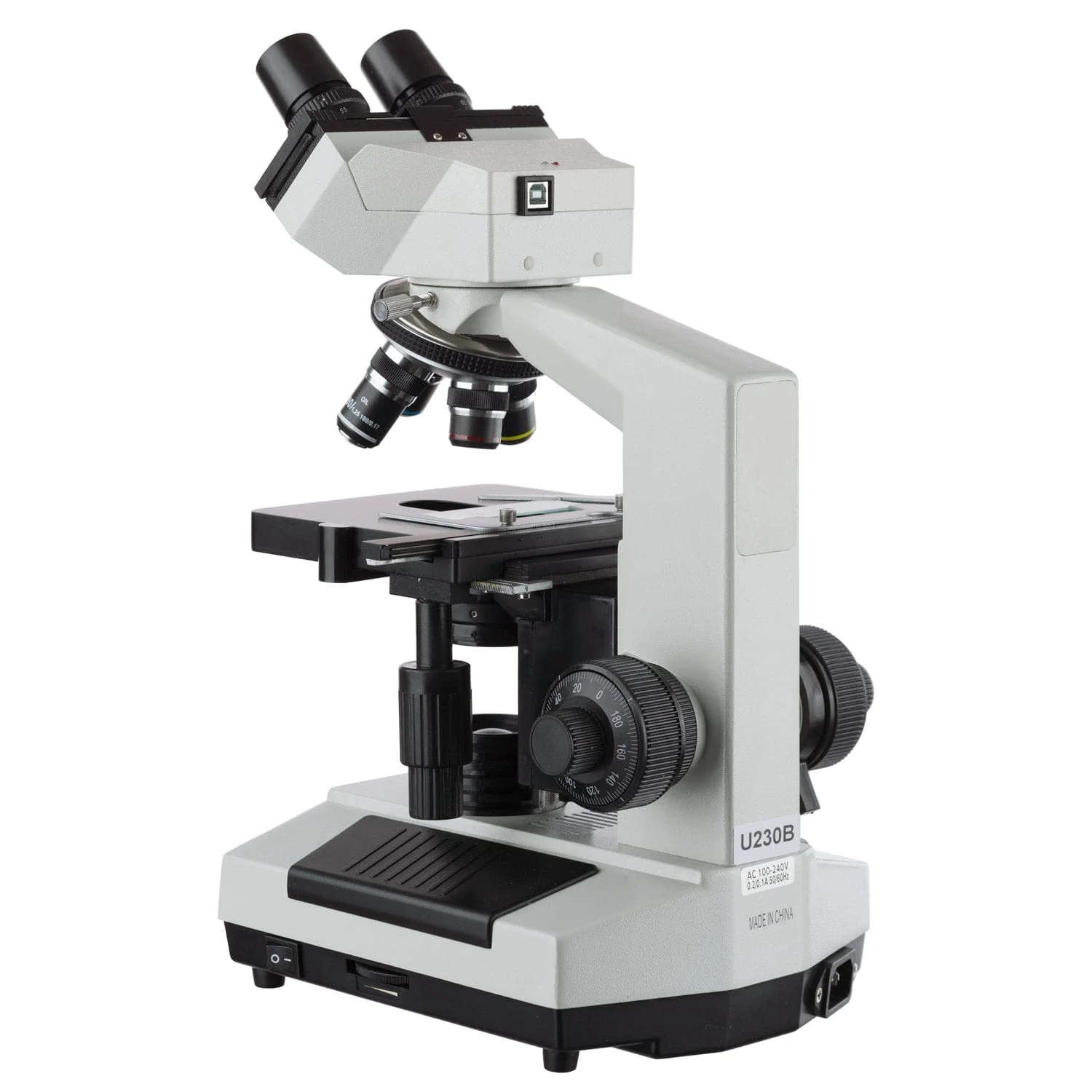 AmScope U230 Series Digital Binocular Compound Microscope 40x-2000x Magnification with Built-in 3MP USB Camera